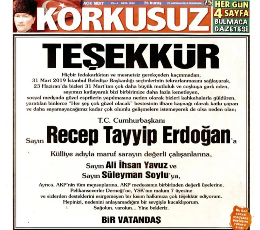 Bunu bende duydum ama değişik şekilde:İtiraz edeceklermiş.Hatta itiraz dilekçeleri hazırmış,usulsüzlük olduğuna dair ama fark çok olunca edememişlerDuyduğuma göre,imamoglu önde gidince karşı çıkma itiraz planları yapılmaya başlanmış. Yıldırım kızmış ve sayım sonuçlanmadan erkenden açıklama yapmış,önlerini kesmiş. Ne kadar doğrudur bilmiyorum.