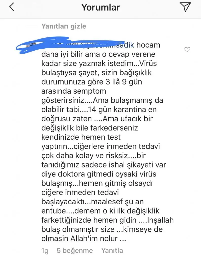 Haklısınız teslimiyet de lazım. Kardeşim çalışıyor diye annemden ayırıp bize getirdim onu, şimdi annem de ishal olunca kendime çok kızdımŞöyle düşünün gelseydi şimdiye kadar gelirdi demi kaç ay oldu sonuçta. Bide ben şöyle düşünüyorum maskesini takip işten eve evden işe yada markete giden birisine Allah korusun tabide çok zor yani bulaşması. Ama şuan ki vakalar neden kaynaklı çünkü kimse dikkat etmiyo herkes düğünde cafede orda burda dip dibe o yüzden bulaş kaçınılmaz oluyor. Bu demek değil tabi bize bulaşmaz tabiki bulasabilir ona da bizim gücümüz yetmez belli bişeyden sonra teslimiyet insanı çok rahatlatıyor.