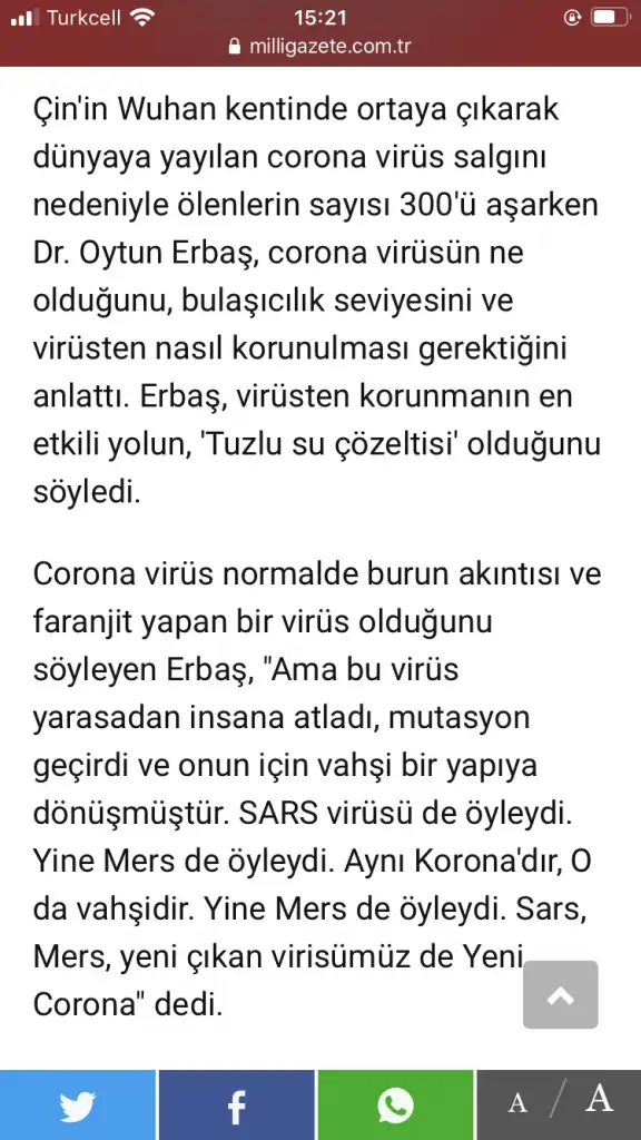 Ya arkadaslar daha hicbir doktor bulamamis nasil engellenir nasil yok olur nasil tedavi edilir ... Hicbir bilim adami bile bulamamis... Biri sicak havalarda bitecek diyor digeri hic ilgis yok diyebiliyor lutfen kendinizi niye uzuyorsunuz tartissacak yok Ben dogru biliyorm diye herkes kendince yapsn biri tuzlu gargarami yapio. Yada viski mi icio alin iranda alkol icen mi dersiniz hindistanda inek idrari icen mi. Siz tartismayn lutfenSssjsjsjsjsj kaynak: milligazete. Düşünen: Oytun Erbaş. Vallahi deminki mesajı sizin mesajınızı okumadan yazmıştım tam da beklediğim gibi çıktınız. Bir de fitocu bir adam var onu da dinliyor musunuz?? Ben şıraya who’nun Hazırladığı afişi bırakayım sizin anlayacağınızı sanmıyorum ama diğerleri anlar muhtemelen.