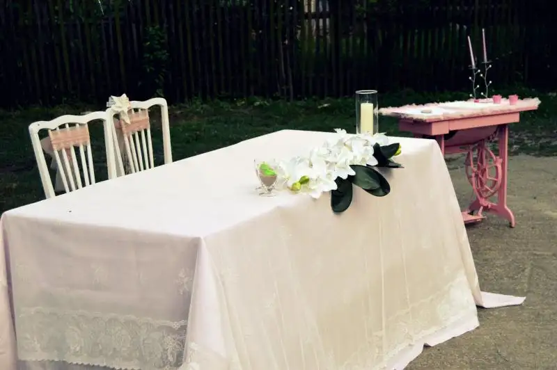 Nikah masamız. Masa çiçeğini hazıra yakın orkidelerden ben yaptım. Sandalyeler çok eski ahşap sandalyeler satın alıp beyaza boyadık eskitme görünümü vermek için. Yine süslemeleri bana ait.