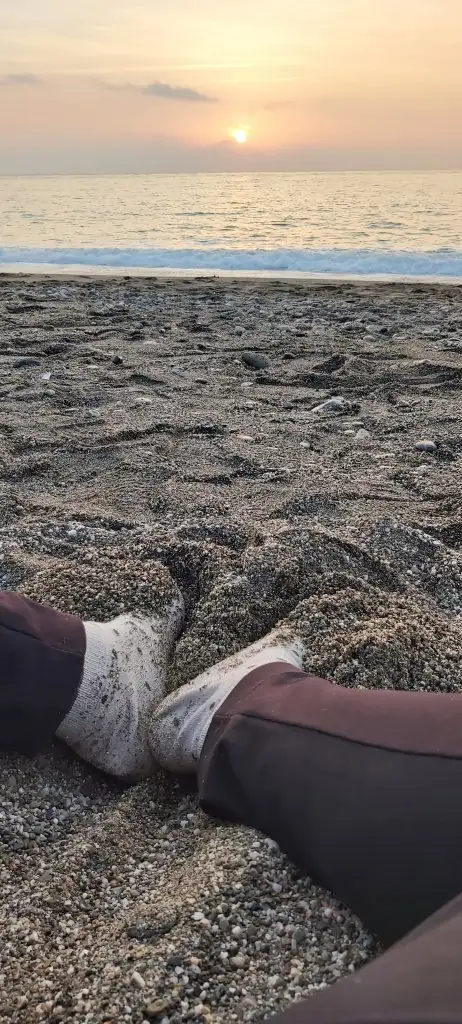 Neyse...arkadaşın arabayla gittik. Çay çerez meyve vs. Derken uçurtma uçurduk. Çocuklar koştu eğlendi. Durun size çorabımı göstereyim.😅 Ama siz yine de manzaraya odaklanın derim.😁