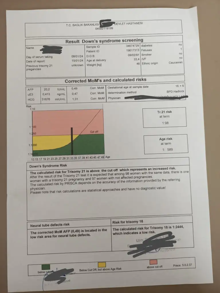 Sevgili Haziran anneleri ikili testi gününü kaçırdığım için yaptıramadım. bu gün üçlü testin sonuçları çıktı. Sonuç riskli gözüküyor galiba. Sabahtan beri ağlamaktan çatladım. Ne yapayım sizce? Üçlü test ne kadar güvenilir olabilir?