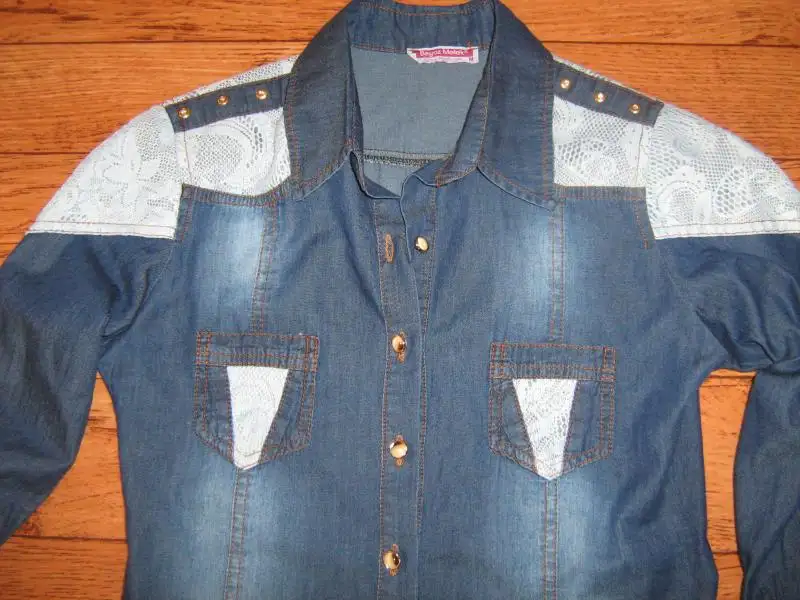 5- 36-38 beden kot gömlek hiç kullanmadım kolları apoletli omzu ve ensesi beyaz dantel detaylı 15 tl