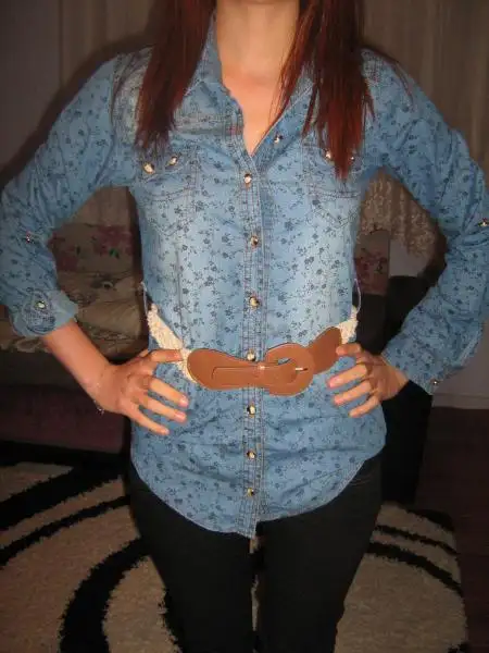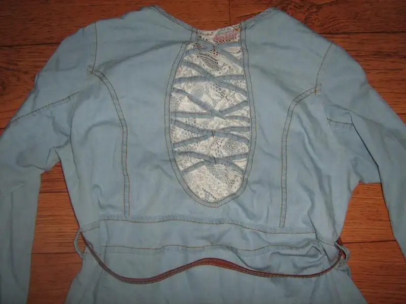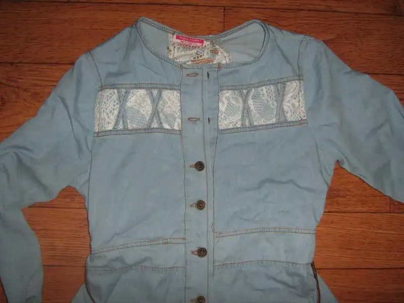 5- 36-38 beden kot gömlek hiç kullanmadım kolları apoletli omzu ve ensesi beyaz dantel detaylı 15 tl