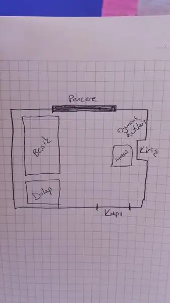 pencereye doğru da alt açma masası i,le iki kapaklı dolap vardı