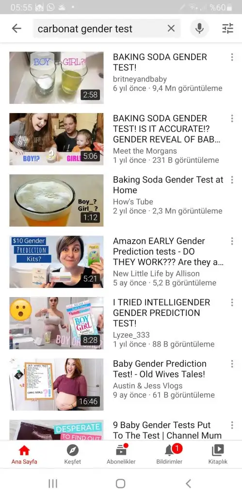 Ben yabancı sayfalardan karbonatla cinsiyet testi yaptıklarını okudum ve YouTube da var videolar
