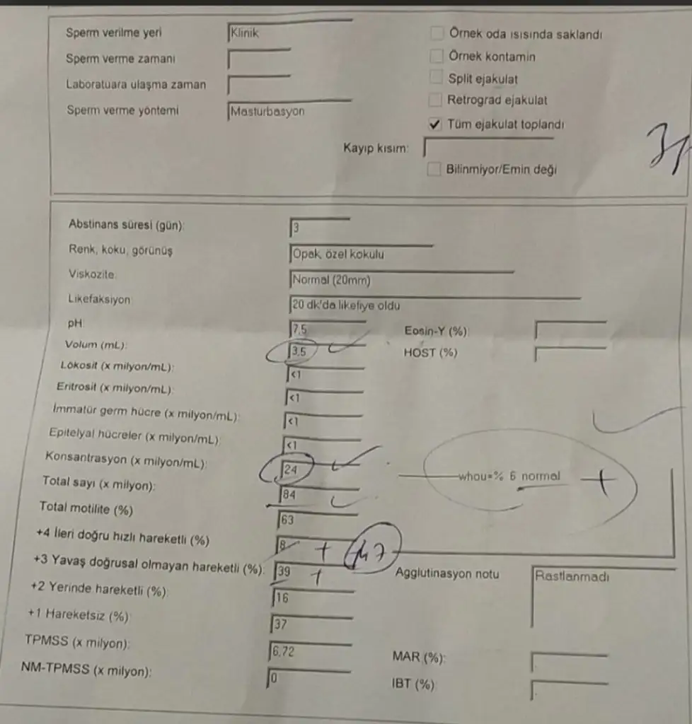 Sonra ben bu testi bir üroloji profa attım adam bana kızdı ki ben demiştim usg doppler yaptırın testislerde sıkıntı var diye eşime gosterdim o da diyo o prof ise bu gittiğimizde doç bak adam direkt dedi olması lazım,bu spermler çakı gibi... İnandiramiyorum da artık inanın ben yoruldummmmm bunca sıkıntıya hep ben giriyorum üzerime çakılı kaldı psikolojikmen