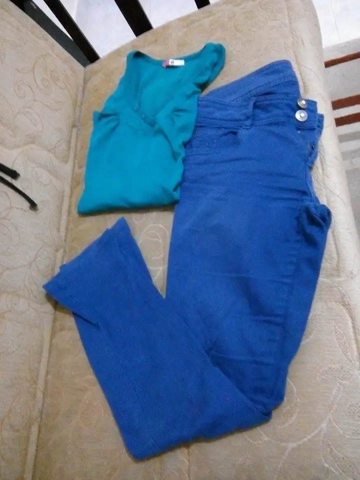 **kahverengi ve yeşil tayt 3 4 kez gıyıldı aşırı kılo aldım gıyemıyorum artık temızdır s beden fıyatları 7 tl dır **siyah pantolon ve yakası tül gömlek kombın s beden fıyat 15 tl dir