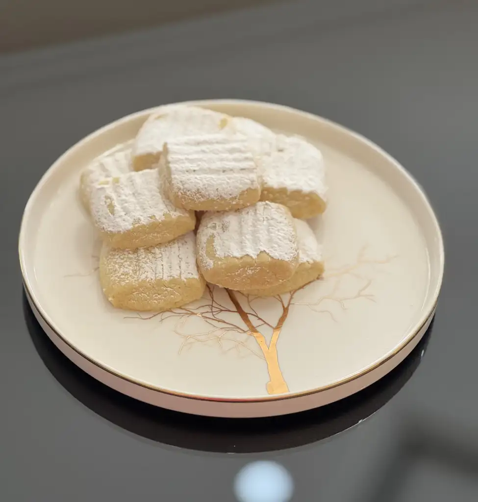 Önceden ısıttığımız 150 derece fırında 20 dk pişiriyoruz. Fırında bir dk bile fazla tutmamaya çalışın kurabiye sert olur. Tamamen soğuduktan sonra üzerine pudra şekeri serpebilirsiniz. Afiyet olsun