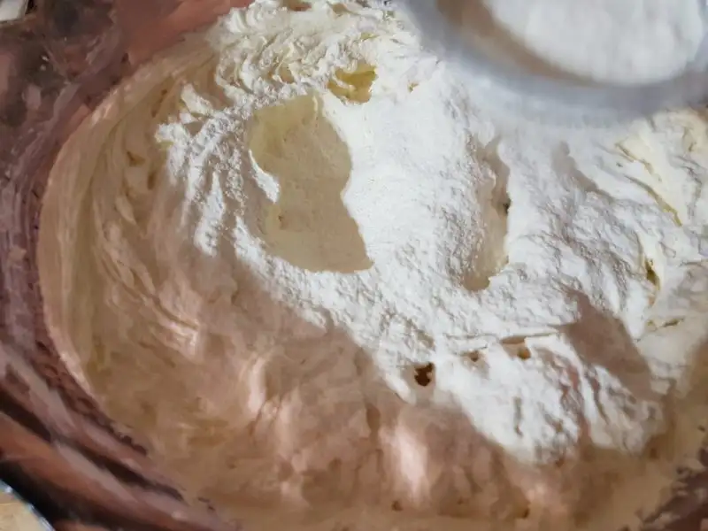 Unu eleyerek ekleyin.Ve un ekledikten sonraki yoğurmayı elinizle yapın.Mikser kullanmayın.