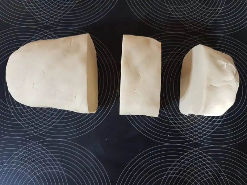 Hazırladığınız hamuru 2 parçaya bölün.Yarısını yuvarlak kurabiye için diğer yarısını ise verev şeklinde kurabiyeler yapmak için kullanacağız.İsterseniz tamamını yuvarlak yada tamamını verev halinde kullanabilirsiniz.Ben her iki çeşidide görebilmeniz için iki şekilde kullandım.