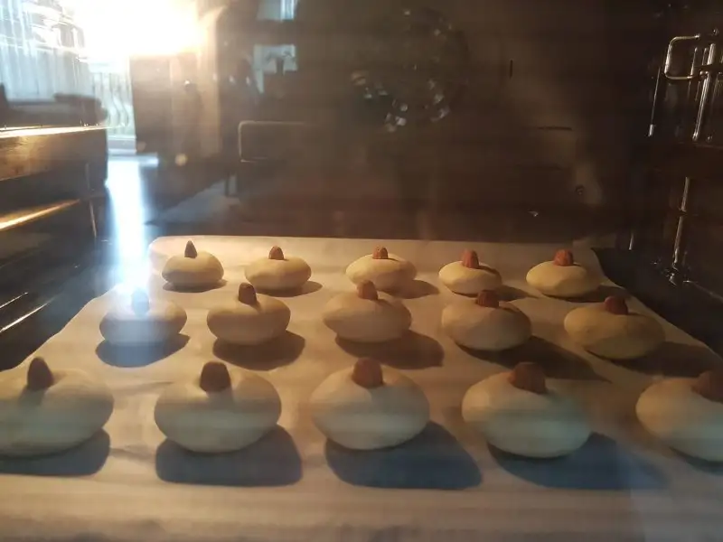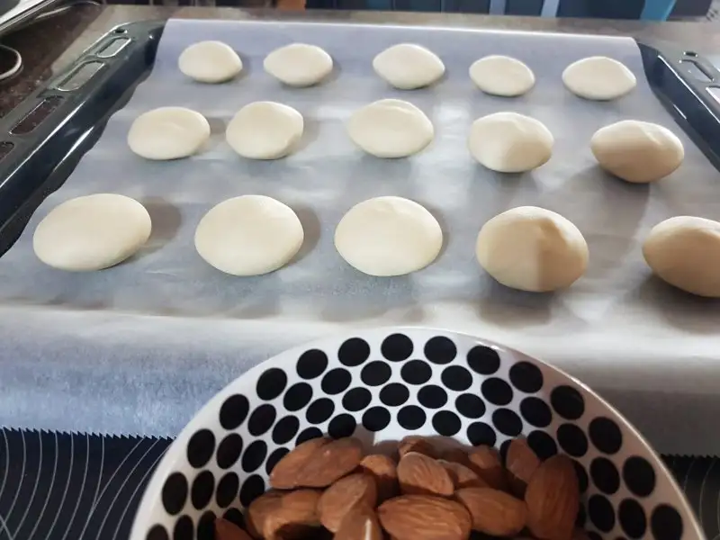Yuvarlak olarak yapacaklarınızı ise elinize ceviz büyüklüğünde parçalar alarak yuvarlayın ve ortasına fındık veya badem kullanın.