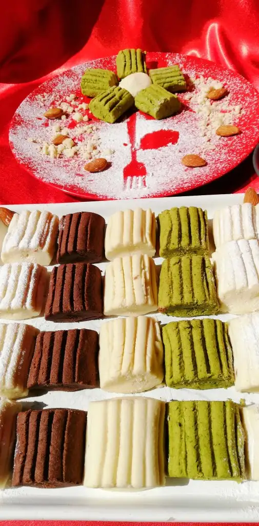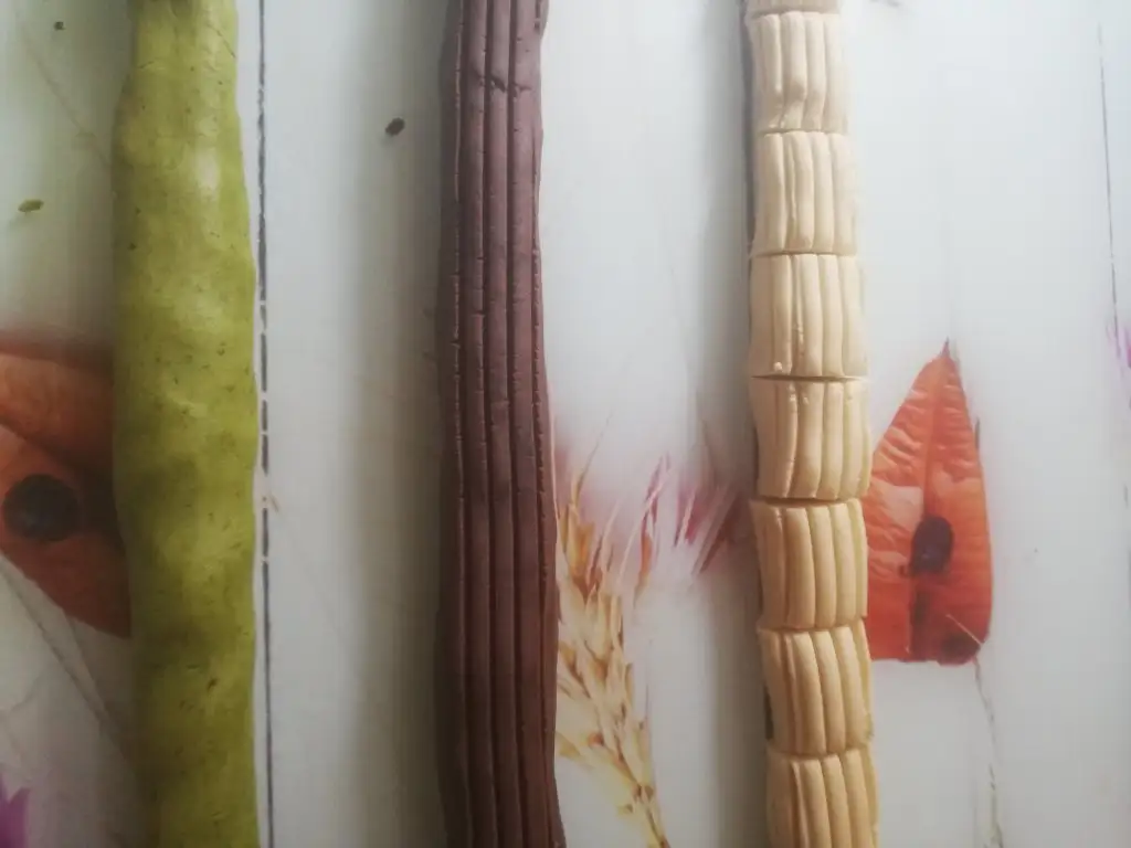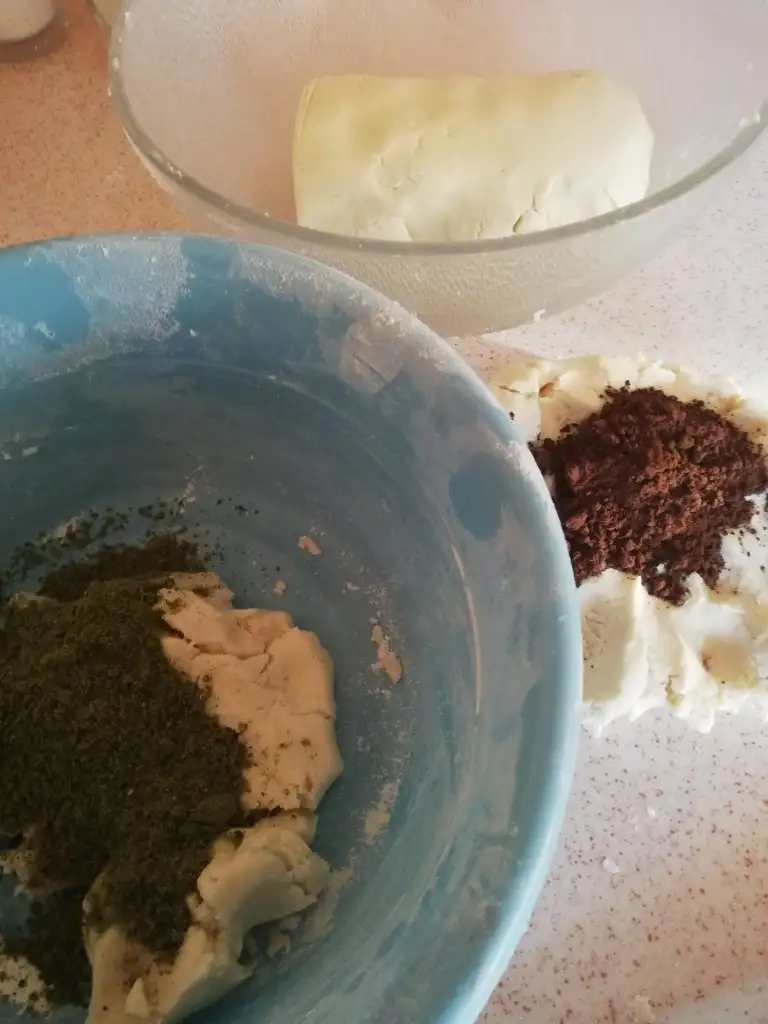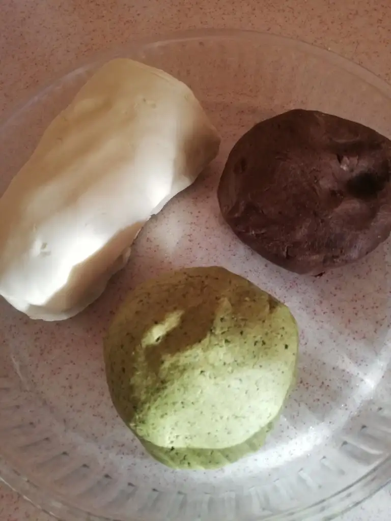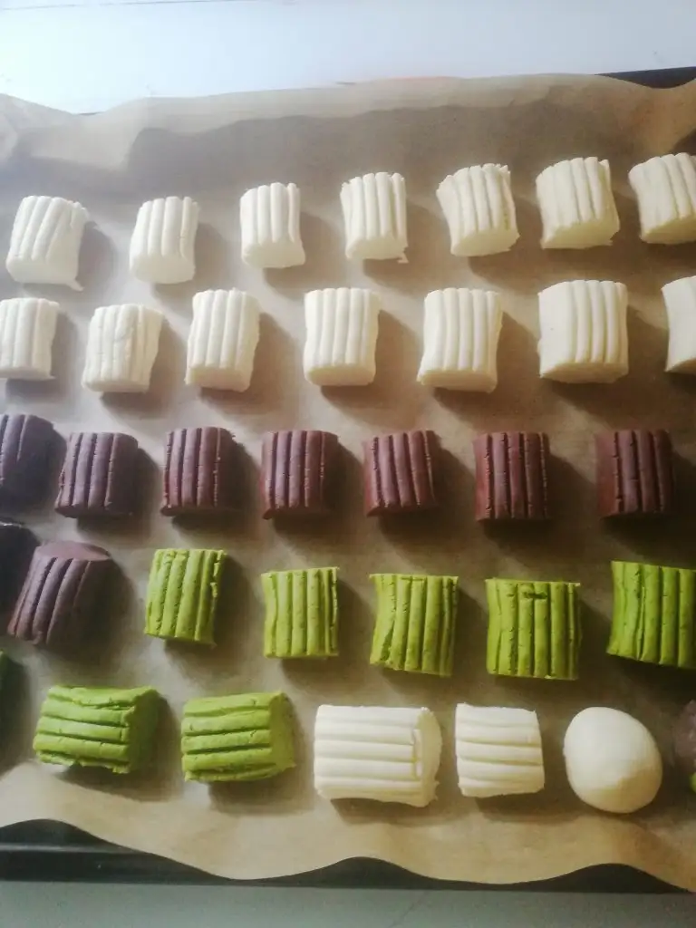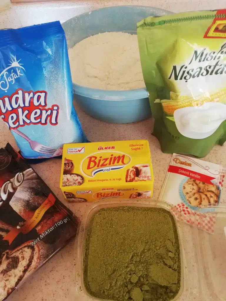 Ben hamuru bölüp bis kısmını kakaolu, bir kısmını fıstıklı yaptım. 2 kaşık fıstık tozu ve 1 kaşık kakao kullandım.