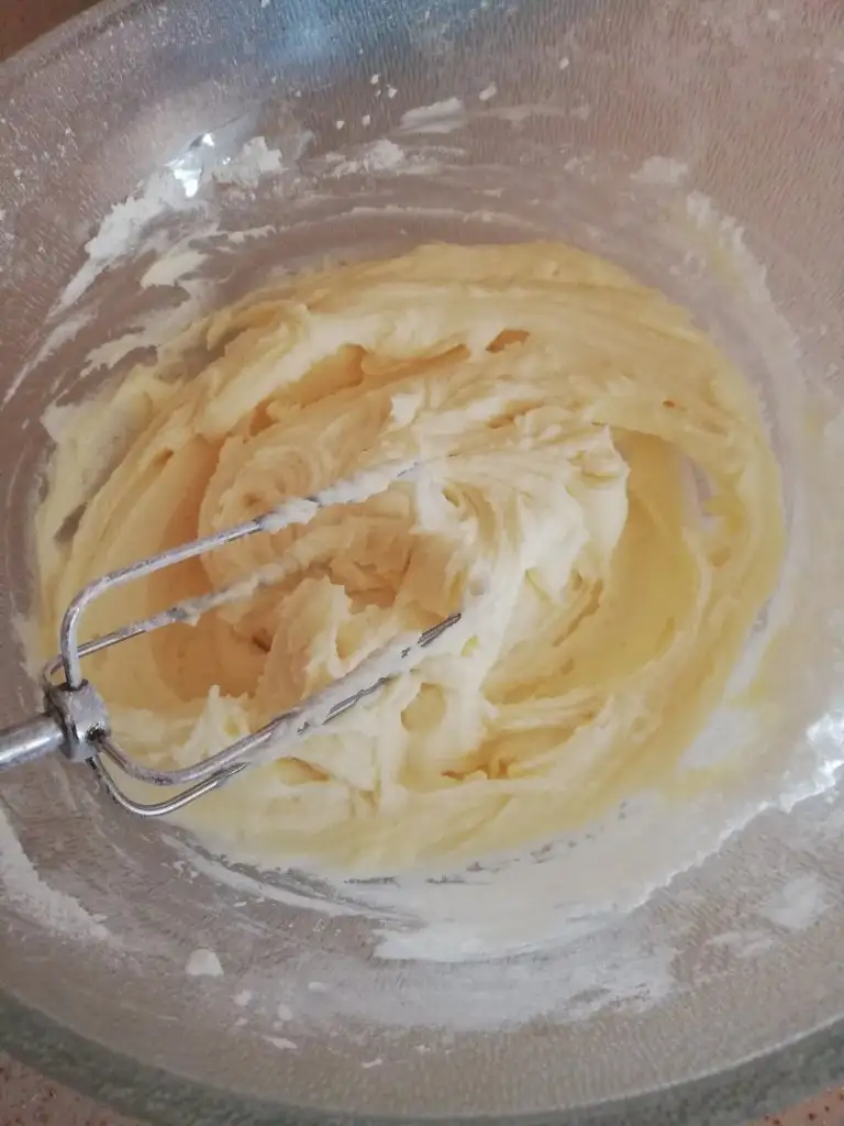 -Yağımız tekrar oda sıcaklığına gelince yağ, pudra şekeri ve vanilin çırpalım, daha sonra nişasta yı da ekleyip yavaş yavaş unu ilave edelim.