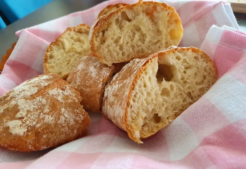 Fırına dayanıklı bir kaba sıcak su koyup fırının tabanına yerleştirin. Fırını alt üst konumda 230 dereceye ısıtın. Ekmeği üzeri güzelce kızarana kadar 30-35 dakika pişirin.Dilimlemeden önce iyice soğumasını bekleyin. İlk çıktığında daha çıtır bir ekmekken beklerken biraz daha yumuşak bir ekmek oluyor.