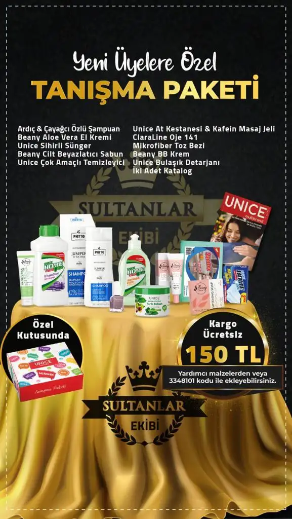 Arkadaşlar UNICE MULTIBRAND hem uygun fiyata almak hemde çevremize satarak %43 kâr etmek ayrica birçok hediye kazanmak için üye olun yardımcı olalım helal sertifikalı ve çoğu bitkisel ürünler kendinize bir şans verin pisman olmayacaksiniz.üye olmak isterseniz linke tıklayın