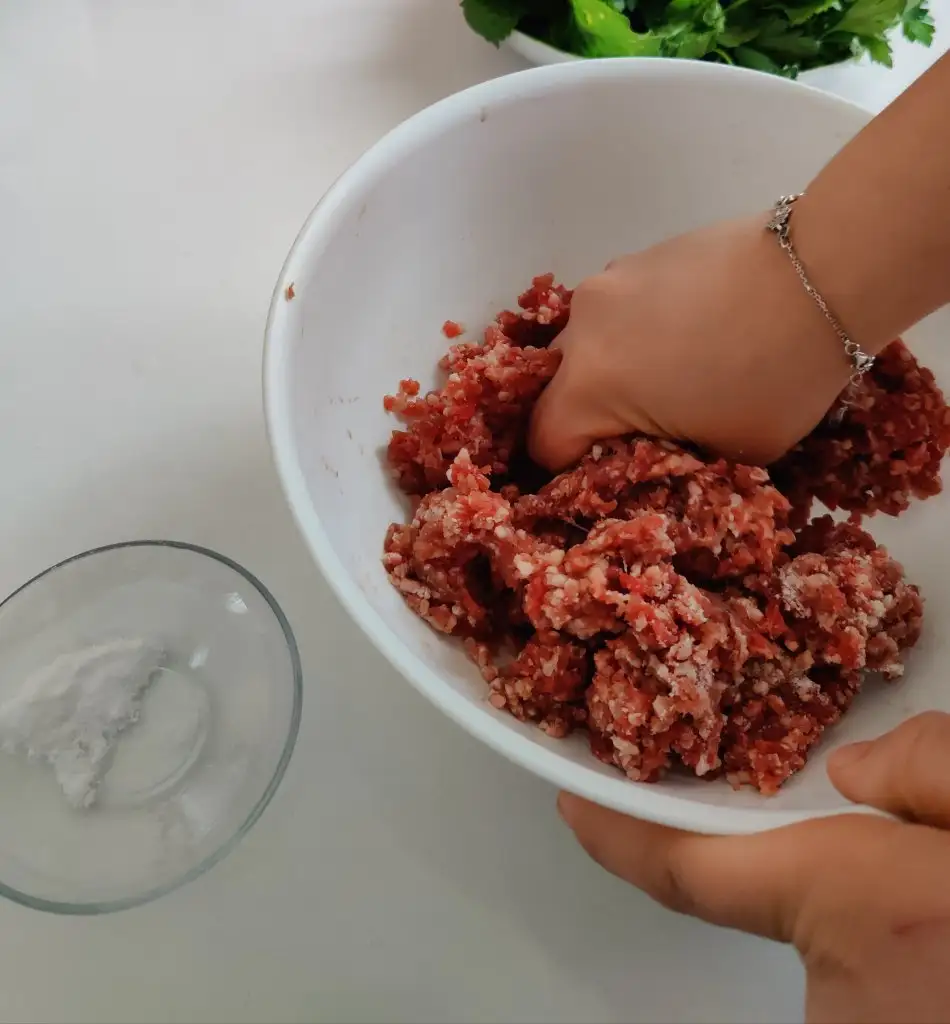 Kıymaya tuzu ilave edip güzelce yoguruyoruz.