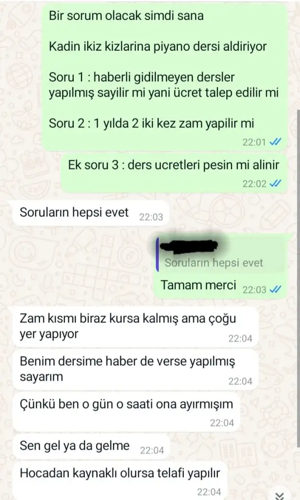 Şimdi arkadaşlar ikiz kızlarım var eşimin müşterisi piyano öğretmeni ve ona derse gidiyorlar kadın tanıdık dedik gönderdik iki defa zam yaptı 1 yılda..
