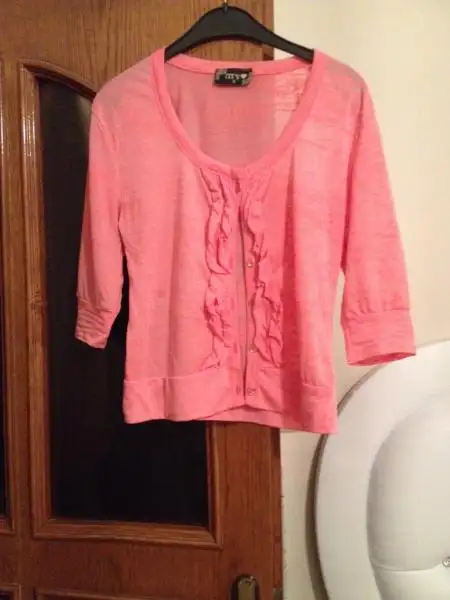 krem tül bolero, krem yarasa kol triko, pembe yarım hırka ve siyah gri çizgili t-şört 5'er tl