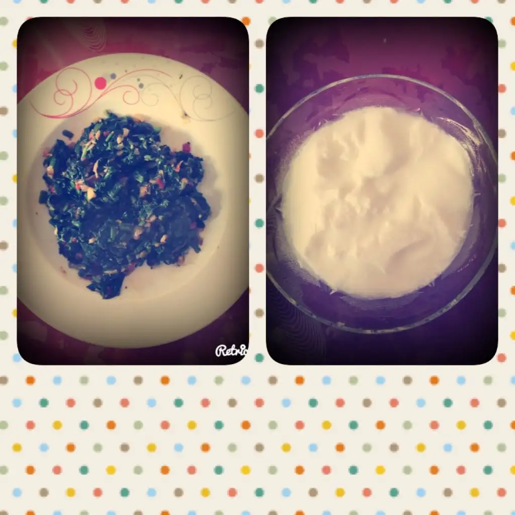 Bu öğlende aynı ıspanak yoğurt yedim okulda yedim için Düzgün foto çekmedim ama aynı ölçülerle yedim