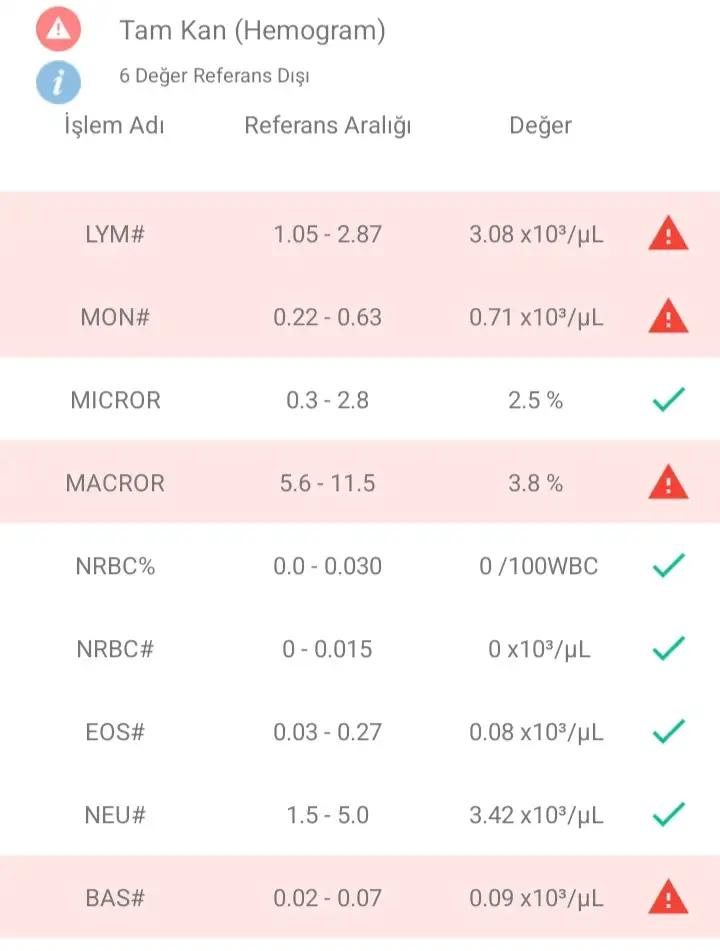 Benımde lym boyleydi ama benım idrar da enfeksiyon yüksek cıktı idrsrda bi de keton.Yanma yoktu ama son zamanlarda biraz biraz hissediyorum. Bu arada ben size şu kan değerimi atsam anlar misiniz? Galiba lenfosit değeri ölçülmüş bende ama ciddilik seviyesini anlamadım yani referans dışı ama çok bi fark yok gibi aralarındaEki Görüntüle 3198485