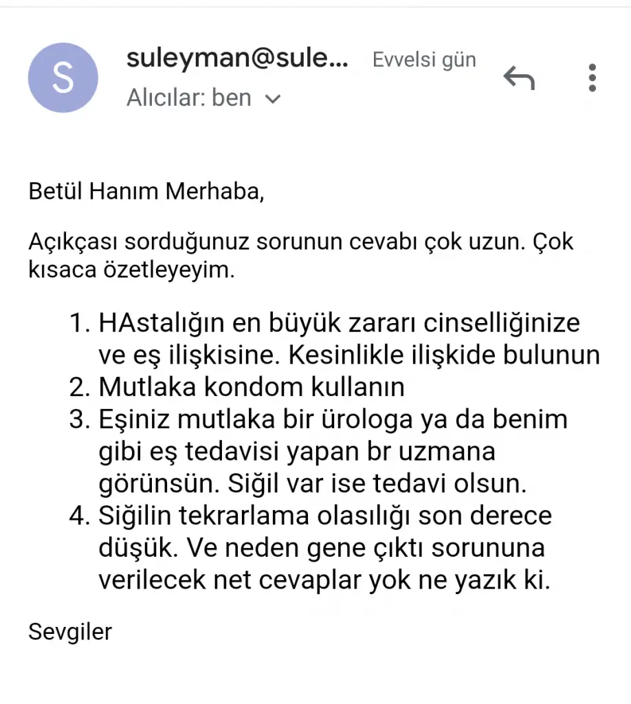 Ben Süleyman beye gidiyorum takiplerimi o yapıyor bana söylediği herşey geçiyor hpv bitiyor ama psikolojik etkisini atlatmak senin elinde hatta bir araştırma yapıyor şuan kendisi hpv nin psikolojik etkisi ile ilgili anketini yapacağım diğer gidişimde kısacası takip ve tedavinizi mutlaka olun ama hayatın gerektirdiği akıştanda kopmayın benim şansım işim gereği çok kötü durumda türlü hastalıklarla karşılaşan hastaları görüyorum ve Allaha şükrediyorum bana tedavi şansı verdiği için hpv ile ilgili ne yaşarsanız yaşayın mutlaka geçiyor siğil bitiyor cin çıkarsa leep çözümü var yani tedavi şansı olduğu için şanslı hissetsin herkes kendini eminim bundan 5 yıl sonra hepimiz bu günleri geçirmiş olacağız ve yenileri gelecek herkese iç ferahlığı diliyorum ve tekrar Allah'a bana tedavi şansı verdiği için şükürler olsun