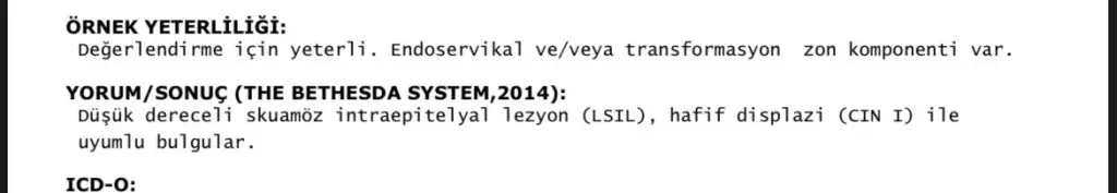 Bu biyopsi sonucunsa hiç sıkıntı yapma gayet güzel ama smear sonucunsa mutlaka kolposkopi yaptır ve tabii hpv tiplemesi yinede içini ferah tut çözümsüz bir şey çıkmayacaktırDoktorumla henüz görüşemedim ama hastahaneden sonucu istedim cin1 geldi sanırım. Eki Görüntüle 3224001