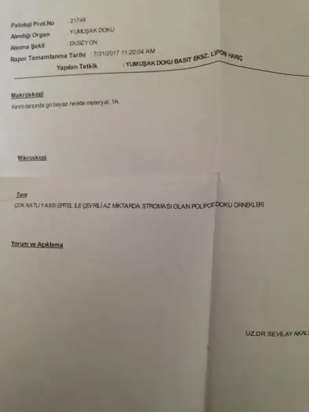 kızlar gece hiç uyumadm hep hiv oldgmu gördgm sabah erken kalktım aç karnına patoloji testimi alıp test yaptrcaktım şansa bakın ki doktorum izne cıkmıştı bnde utandgm için diğer doktorlara girmedm. testte hpv yazmıyo yanlış mı yaptılar bilmiyorm ama 4 doktor yayıldgnı görüp siğil demişti patolojide cıkanı atıyorm az cok hepiniz hpv de master yaptınız doktorum yarın gelickmiş yarın göstercm gidip kagıt bu lipom haric yazısını da anlamadm yarını bekliormBende ayni yollardan gectim biliyorum o korkuyu ama inan belirli bir sureden sonra insan herseye her zorluga alisip atlatiyor lutfeb panik yapma git testlerini ol rahatlicagina kalpten inaniyorum
