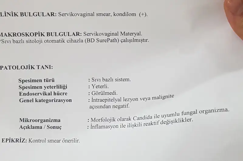 Teste göre serviks temiz yani rahimin kendisi aynı ben gibi yani bilemiyorum sende siğil varmı yokmu ama varsa ona göre yazıyorum bu çok güzel bişi ama bu vajina kanalı temiz anlamına gelmez zaten oraya yavaş yavaş ilerliyor siğil oraya taşınıyor bu yılları alır yani burda cin 1.2.3 olanlar beklemiş kanal temizliği yapılmamış farkedilmemiş olanlar sonuçta içeri açıp bakamayız göremeyiz doktor görür anaskopi ve kamera ile tabiki kendinden pütürlü olduğu için kanal farkedilmesi güç çok büyüyünce belki..bu leep olan arkadaşlar sadece orayı tedavi ettirerek bundan kurtulamazlar kanalıda çok sağlam bir doktora göstermesi lazım bu arada daha önce cin 3 ve de hıv virüsü taşıyan atlatmış bir arkadaşım verem oldu karantinaya alındı ve tedavi gördü şuan ilaç kullanıyor ben bu hastalığı ona bağlayacak değilim ama tedavi olmak mümkün bugünki ilerlemiş tıpla hastalığımızı yawaşlatabiliyoruz bağışıklık bu nelere mal olur bilinmez..arkadaslar smear sonucumu aldim intrepital lezyon ce malignite acisindan negatif gorunuyor. bu smeat temiz mi demek oluyor.doktor tamam bunda sorun yok dedi. dna kondlm cikmadi 7 gunu war.bu temizse yinede onda gorulebilir mi((sonucumu yukledim bi baksaniz sonucta kontrl smear onerilir dio onerilirEki Görüntüle 2088216
