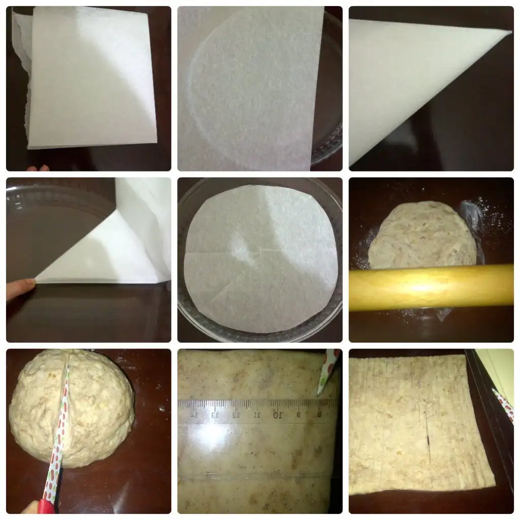 Yuvarlak borcamınızın üstünü kaplayacak büyüklükte yağlı kağıt kesiyoruz.