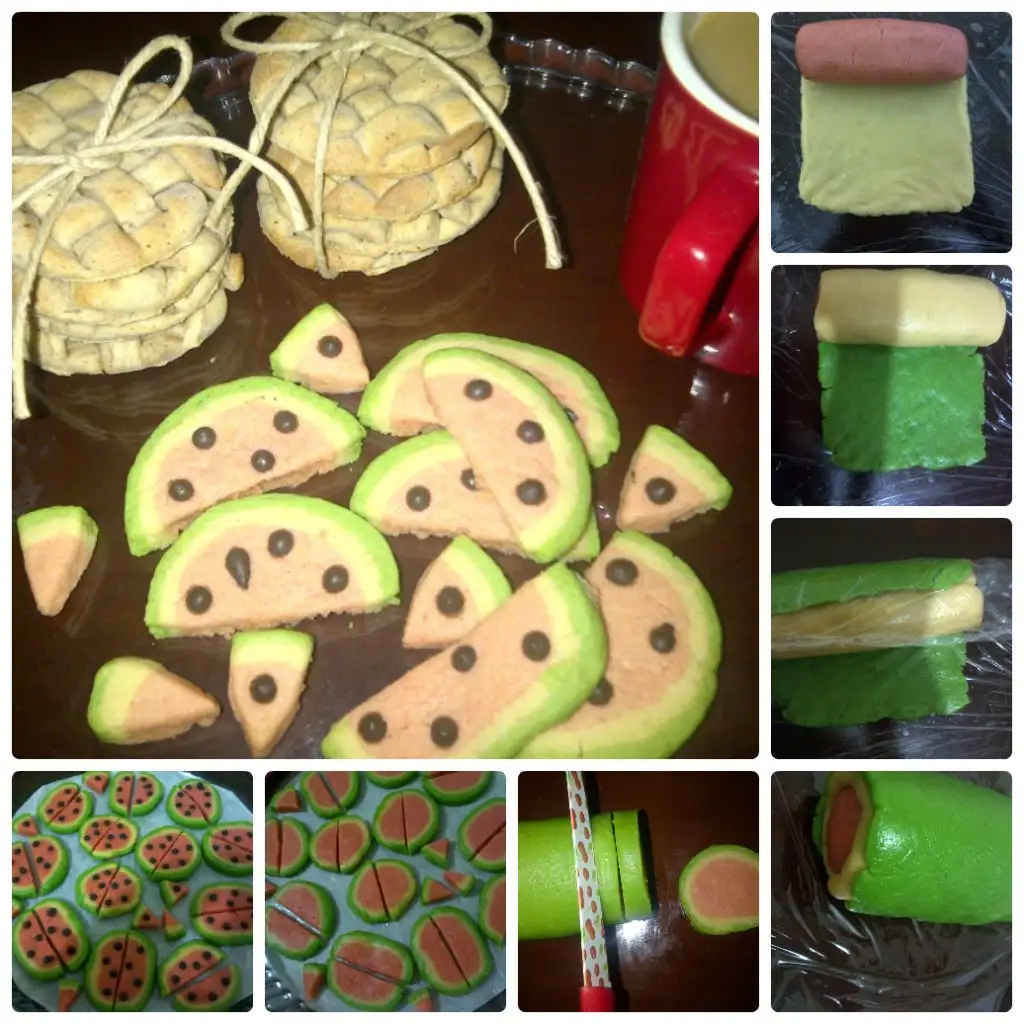 Her zaman ki gibi beceriksizliğim ön planda görüldüğü üzre gecenin 2'sinde 3'ünde yaparsam böyle olur işteKarpuz kurabiyelerimin rengini ayarlayamadım önceki yaptığım çok güzel olmuştu ama olsun maksat katılmaktı dostlar