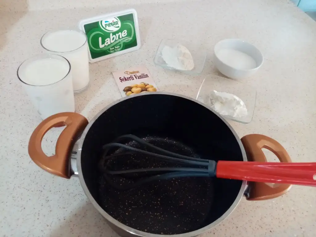 Sonra krem şantiyi hazırlayıp 5 dk dolaba atıyoruz.