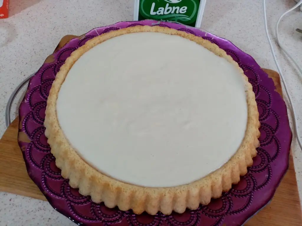 Sıcağı çıktı mı Labne ve vanilya'yı da ekliyoruz ve soğumus kekimizin üzerine döküp buz dolabında soğumaya bırakıyoruz.