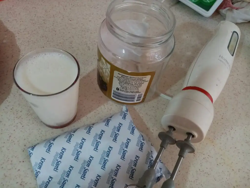 Sonra krem şantiyi hazırlayıp 5 dk dolaba atıyoruz. Eki Görüntüle 2684314 ben krem şantiyi kavanozda yapıyorum ki sıçramasın diye. Bu arada süsleme poşetim de patlayınca buz dolabı poşetine doldurup yaptım süslemeyi😱Eki Görüntüle 2684315