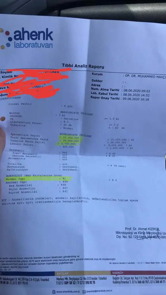Kuzum sana attığım test ilk sperm testimiz Bir de ameliyattan önceki sperm testimizi atıyorum Onu da şimdi buldum çekmecedenAnormal sperm yüzdesi çok fazla ama ilginç ki ileri hızınız çokta kötü değil, hatta gayet normal.