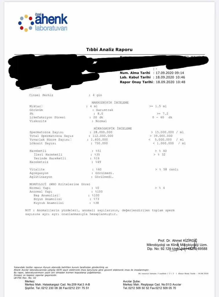 Masallah baya degismis sonucKızlar merhaba esimm Haziran'da varikosel ameliyatı oldu Doktor 3 ay sonra test vermemizi söyledi eşim doktorun dedigi gibi test verdi, sonucu da aşağıya ekliyorum resmini. ameliyatı haziranın ortasinda oldu ameliyattan sonra da vitamin kullanmaya başladı ( proxeed bitamin adı) aynı zamanda keçiboynuzu pekmezi de yedi. Sadece bu ikisini kullandı ameliyattan önceki testine uste,altınada ameliyattan sonraki testine ekliyorum karşılaştırıp yorumlar mısınız lütfen... doktor telefondan sadece Morfoloji bozuk demiş şu anlık bunun içinde tekrar bir tane vitamin verecekmiş sizs sorum şekil bozukluğu devam ediyor tamam ama sayısı, hızlı gebe kalmak için iyi midir toksa biraz daha artmasi gerekiyormusu sayi ve hizin