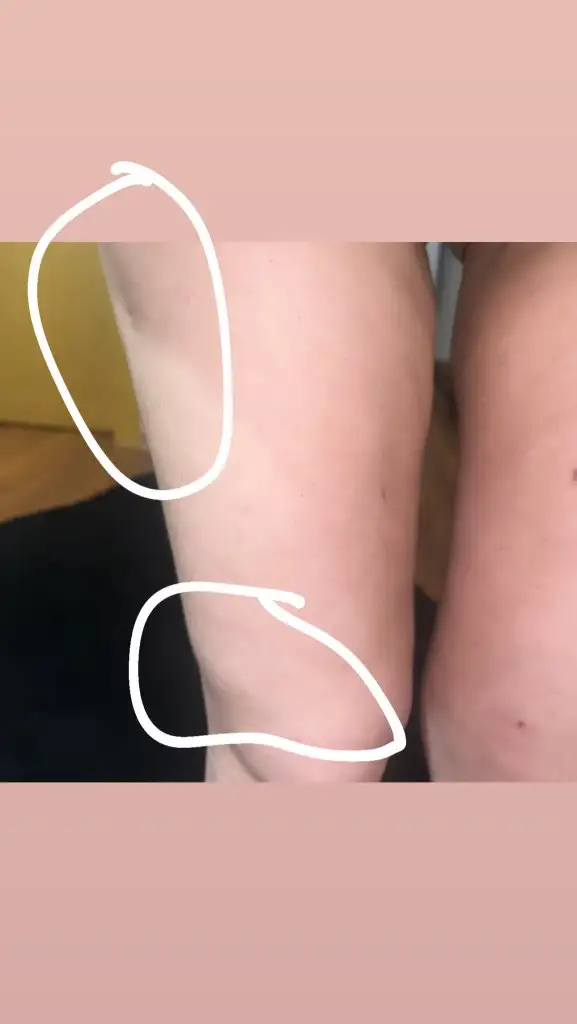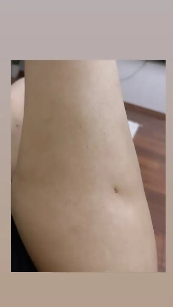 Liposuction yerinde de bahsettiğim çöküklük bu şekilde. Tamamen dümdüz olmadı henüz.