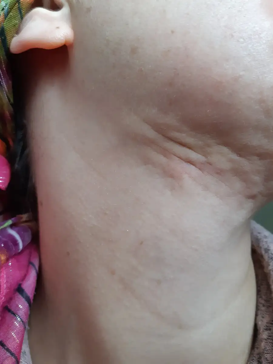 3 aydan fazla oldu ama eski dalgasi yok.ozellikle sol taraf yok denecek kadar az. Benim yukarda attigim resimde 2 tane cizgi var. Sanirim cok sikilastirmis orada ve o iki tane cizgi hala duruyor ve gecmeyecek galiba. Ama goruntu olarak cok memnunum. Cene dolgu yaptirdim cene hattim daha ortaya cikti.