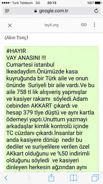 Diğer milletlere kucak açan Türk ün, yıllarca Kürt sorunu diye kandırılması neyse bugün de Suriyeli meselesi o bana göre.