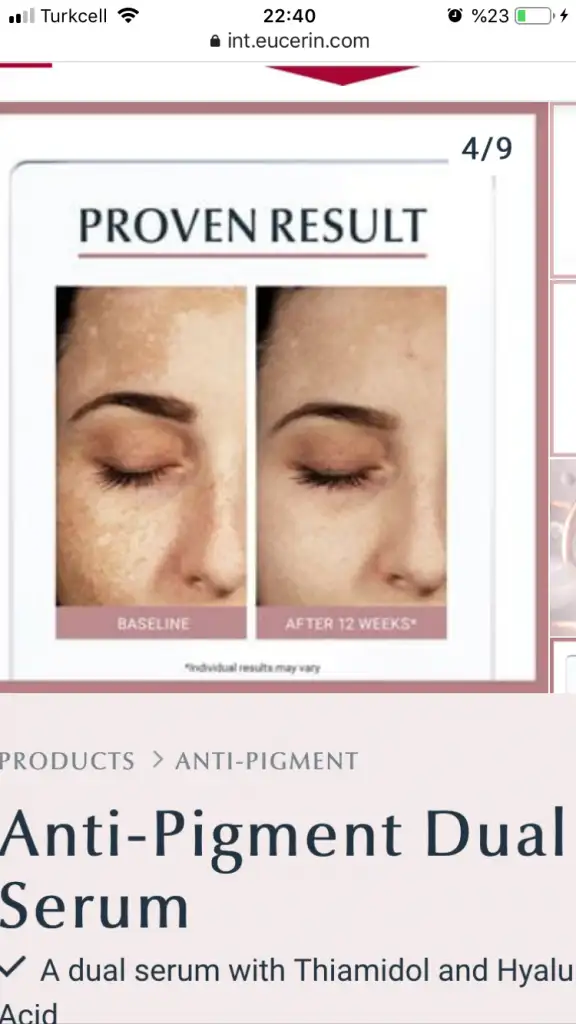 Yok. Dün sosyal medyada gezerken the purest markasının arbutin serumunu kullanan biri ile konuştum. 4 yıllık doğum lekesi varmış. Kullanmış ve alın ve yanaklarında olan lekeleri azalmış. Bi de bazı markaların uzaktan protokolleri var. Obagi markasının bi protokolünü kullanan birinde de baya baya güzel sonuçlar elde edilmiş. Ama eucerin niye işe yaramadı bende bilmiyorum. Set daha sipariş verdim. Biraz daha şans vermek istedim. The purest arbutin, yine aynı markanın niasinamid serumunu da sipariş verdim bunları da kullanıcam. İnşallah işe yarar