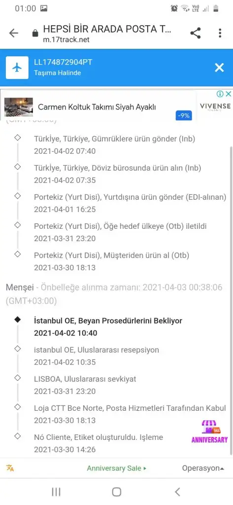 Cevaplarınız için çok teşekkür ederimBurada gümrüğe takılma durumu yok daha, ülkeye girmiş ancak ptt çok bekletiyor. Benim 15 günden önce portekizden ülkeye girmişti ancak daha çok ptt de bekletmişlerdi.. Gidip almak istediğimizde de iki kez geri çevirmişlerdi..bir kez daha gitmiştik ve o zaman yardımcı olmuşlardı.. Umarım takılmaz gümrüğe