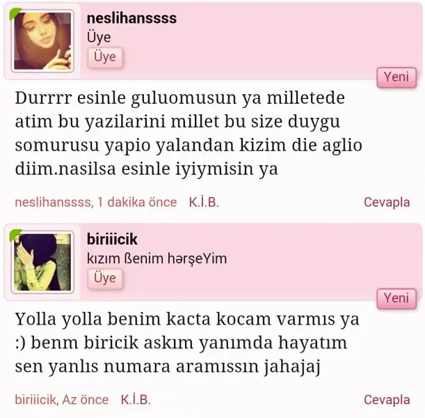 Hala bana ozelden seref..sz bilmem ne a..di ne diyor iste seviyesi bu ama bn biliyorum ona onun sayesinde esimle aramız iyi oldu guluyr odailkduyansenol ortaya bir laf attınız kayboldunuz!!