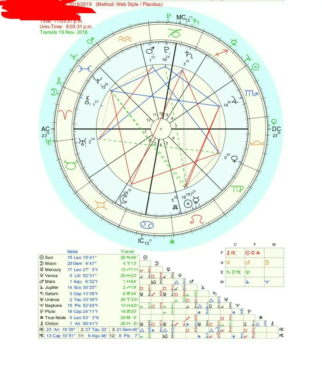 Haritana bakınca bana işle alakalı bir değişim olabilir gibi geldi, 7. ev ortalık, taşınma, ikili ilişkiler, evlilik ya da ciddi ilişki gibi durumlardır akrepte jüpiter var, akrebin yöneticileri mars ve plüton 10. evde iş ve toplumsal statü evinde. 7. evin 2. yöneticisi de 6. evde, 6. ev günlük rutinimiz, hastalıklar, çalışanlarımız, iş ortamımız gibi konular. Aralarında bir bağlantı kurulabilir gibi geldi bana. 9. ev satürn uzak yolculuklarla, yüksek öğrenimle vs. ilgili engeller, sıkıntılar yaşanabilir. Açılardan bağımsız konuşuyorum tabi.
