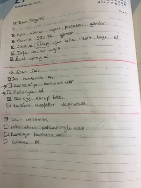 Not kısımları toplantı sonuçları alışveriş list vs olur