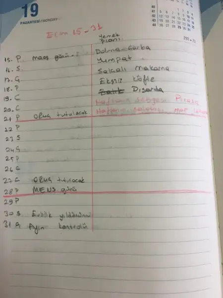 Bunları da yıllık planda belirtsem unuturmuyum acaba