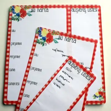 Sayfaları koparılabilir olduğu için ben koparıp tek sayfayı cüzdanımda taşıdım dün. Alınacaklar vardı, onları da yazmıştım.Bu tarz bir ürün bende sipariş ettim