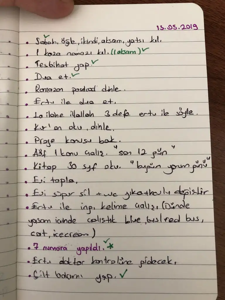 -günün listesini sabahtan yapınca daha düzenli ilerleme kat ediyorum değilse yapılacakları unutuyor vakti deperlendirmede güçlük çekiyorum.