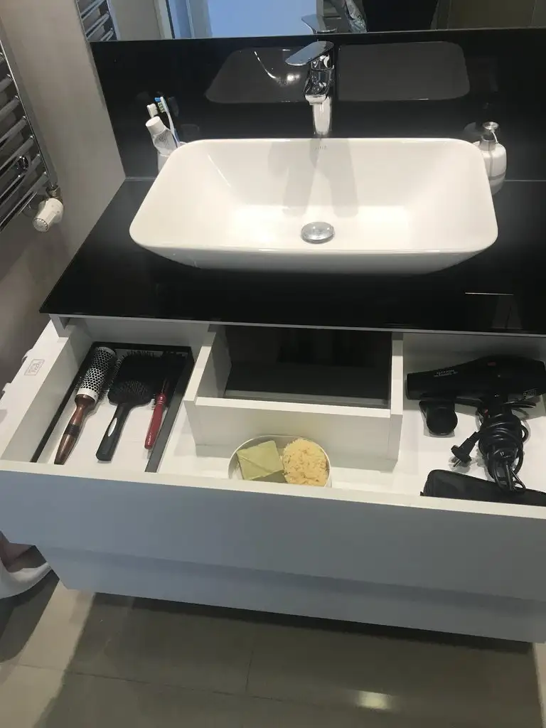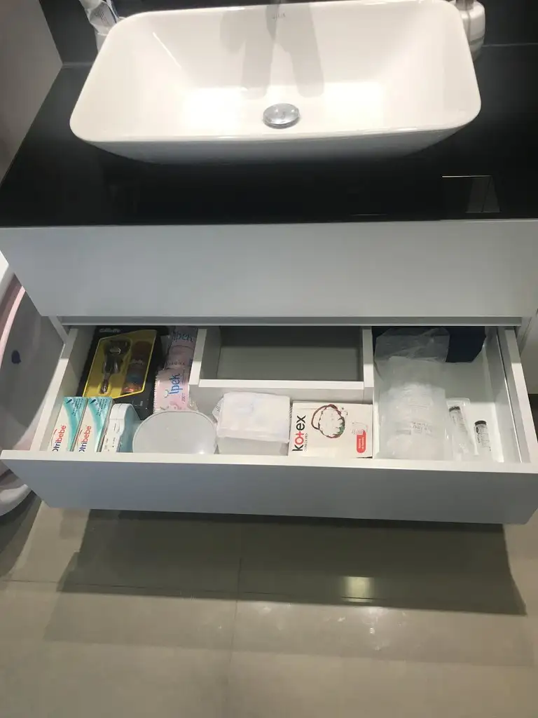 Eline sağlık, çok güzel görünüyorDuş, banyo dolabı ve çekmeceler bu şekilde
