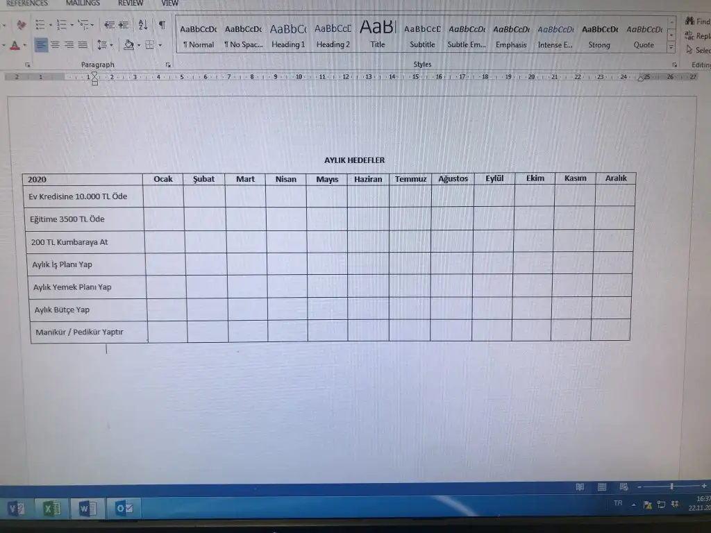 Bir tane aylık hedef listem var, diğerleri günlük takip edilecek. Her konu başlığı ile ilgili maddeleri, takibin kolay olması için minimuma indirmeye çalıştım.