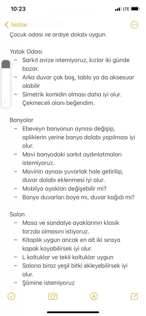 Berjerlerin masanın önünde olması kalabalık görünüyor. Berjer arası sehbanın beyaz ayağı daha farklı olabilir miydi diye düşündüm. Berjerlerin modelini değil ama kumaşını sevdim. Tv nin arkasındaki mermer görünüm tv ünitesinin devamı mı? Oradaki çizgi hiç olmasa bütünlük olur. Asimetrik olmuş. Bence olmamış. Mermer masa hoş. Koltuklar da hoş. Sarı ışık daha şık. Güle güle kullan şimdiden.